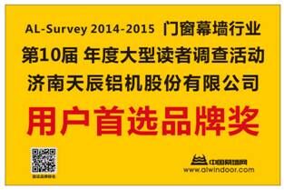 AL-Survey讀者調查活動全稱:中國幕墻網(wǎng)年度大型讀者調查活動暨“我最喜愛品牌”評選活動。(以下簡稱AL-Survey)我司作為設備領域的領先企業(yè),自上界獲得用戶首選品牌及市場表現(xiàn)獎之后,2015年再次憑借“天辰鋁機”品牌在市場中的優(yōu)異成績,強勢入圍2015-2016年度第11屆門窗幕墻品牌榜活動。通過近十萬名活動參與者的票選,AL-Survey將成為我司年度市場品牌推廣與產(chǎn)品銷售、服務質量的晴雨表。