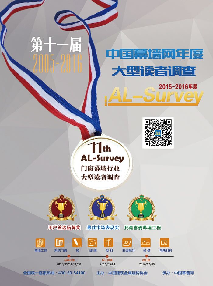 ????? “AL”是鋁門窗幕墻委員會aluminum的英文開頭首母,“AL”還代表鋁的元素符號,同時,“AL”是中國幕墻網(wǎng)域名ALwindoor的簡寫,“Survey”則代表調查。